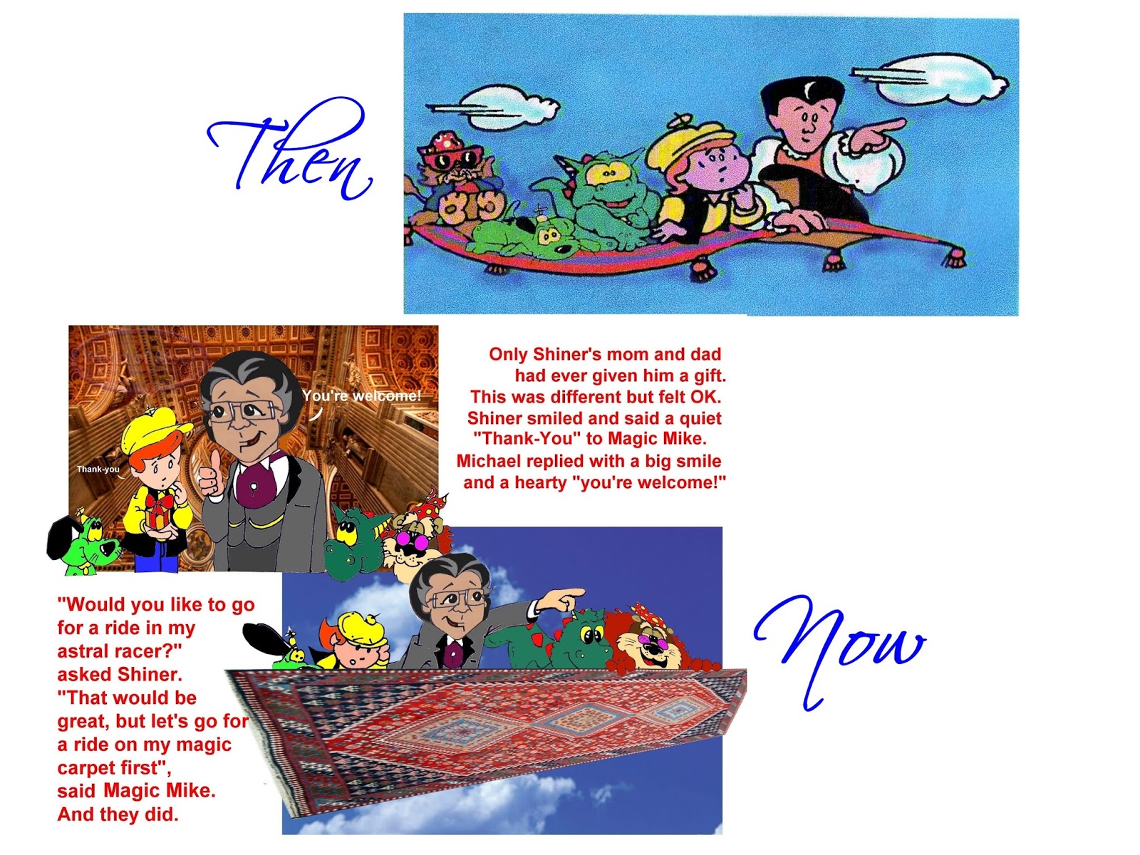 Excited about the 10th printing of my very first children's book, first penned and illustrated in 1978! This heartwarming tale about a boy and his moondogg takes place in the future, where excitement and adventure lead the way. Shiner also learns a lesson or two about life from the kindly wizard, Professor Michael! (Magic Mike Likey) Also includes full-color illustrations by myself.